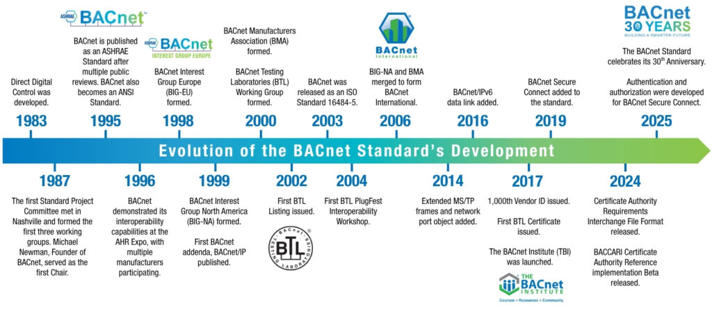 Consolidated versions of the BACnet standard and its companion test standard, including all errata and addenda, continue to be published every few years as new capabilities and technologies are added to BACnet.